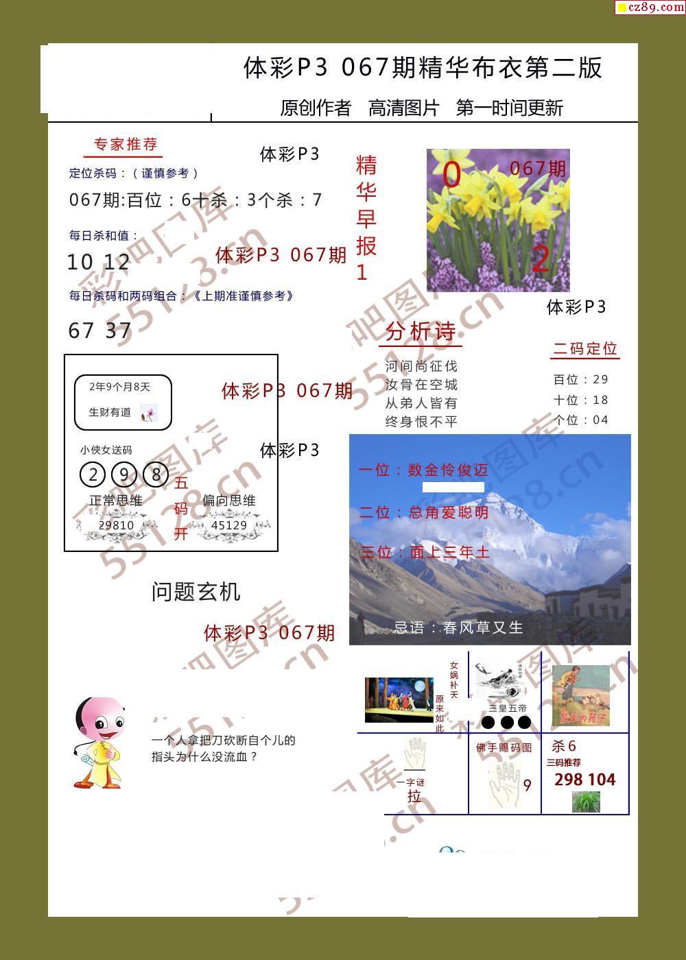 精华布衣彩报067期体彩p3图谜