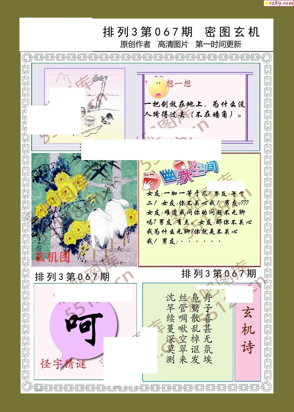 2026年067期牛彩网体彩P3画迷图谜汇总分享