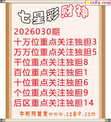 26年体彩七星彩030期 名扬天下本期推荐一注