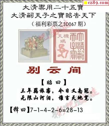 李白中奖真言2026067期今日3d图谜