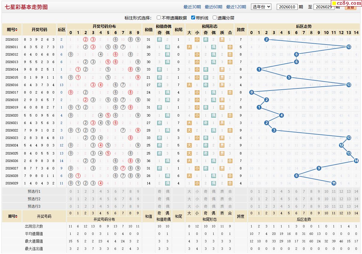 七星彩030期 彩宝贝专家直选杀号预测图表