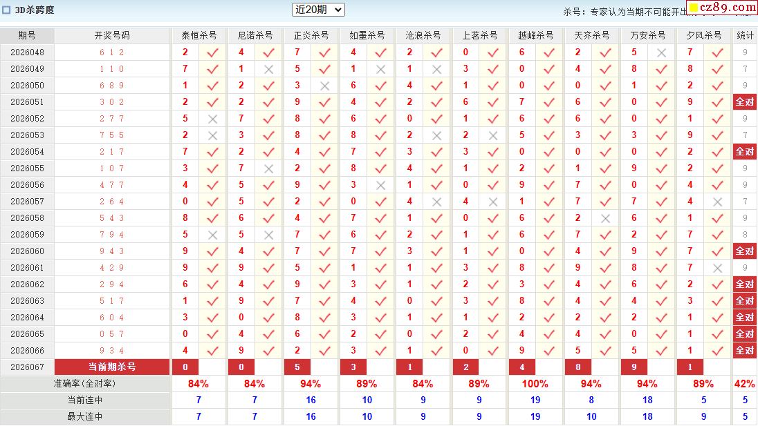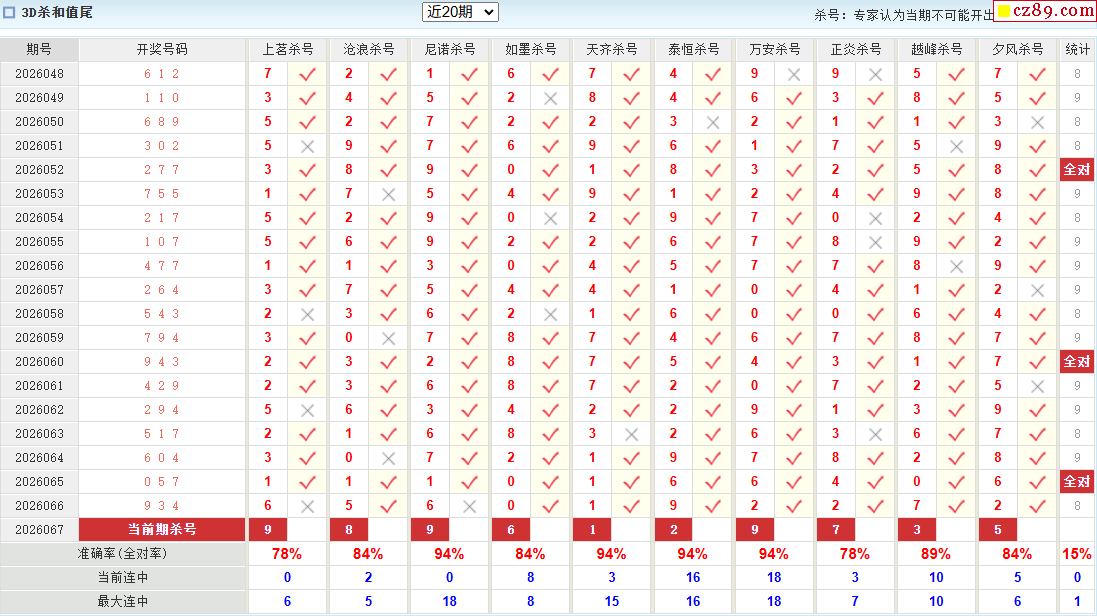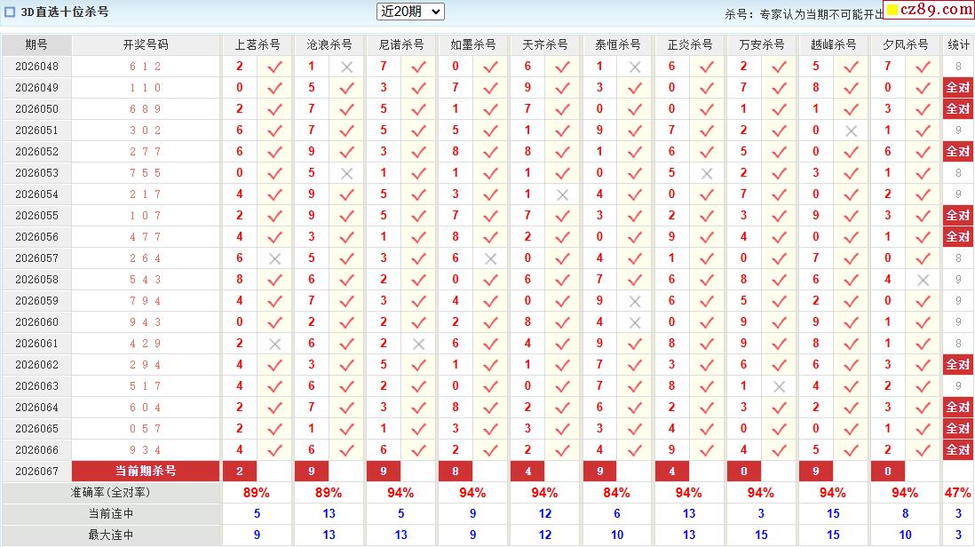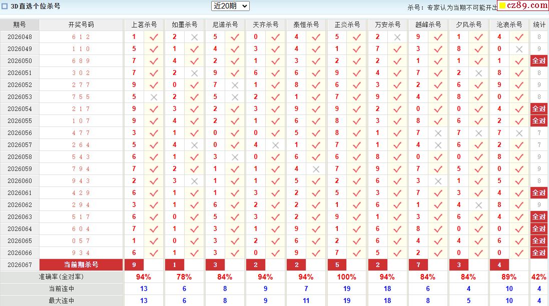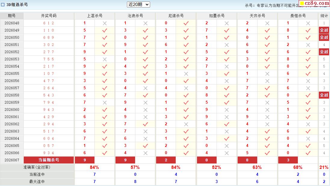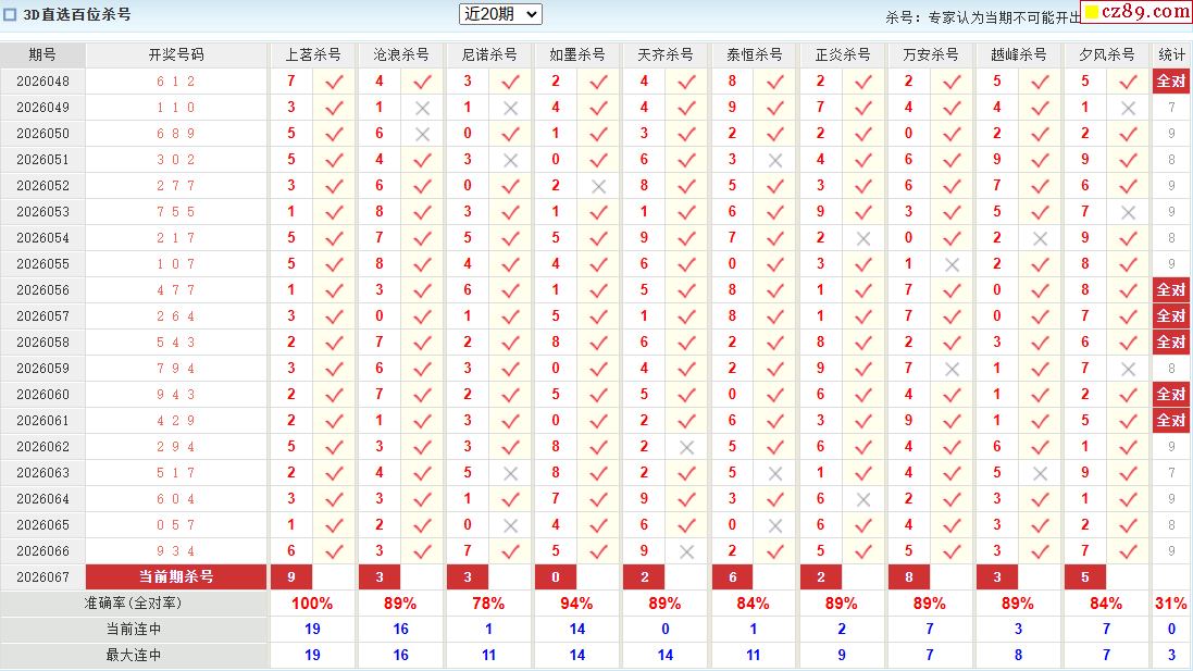 26年067期彩宝贝专家福彩3D杀号定码图表