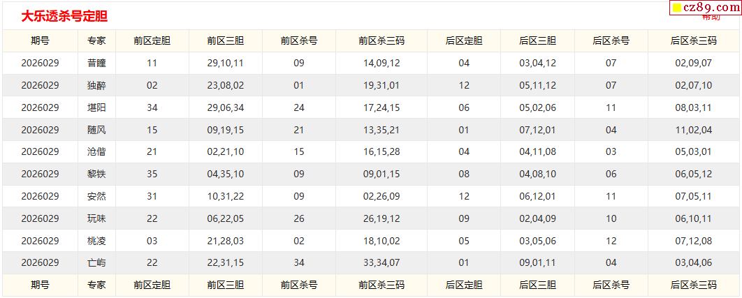 大乐透029期牛彩特邀专家前区后区杀号定胆图表