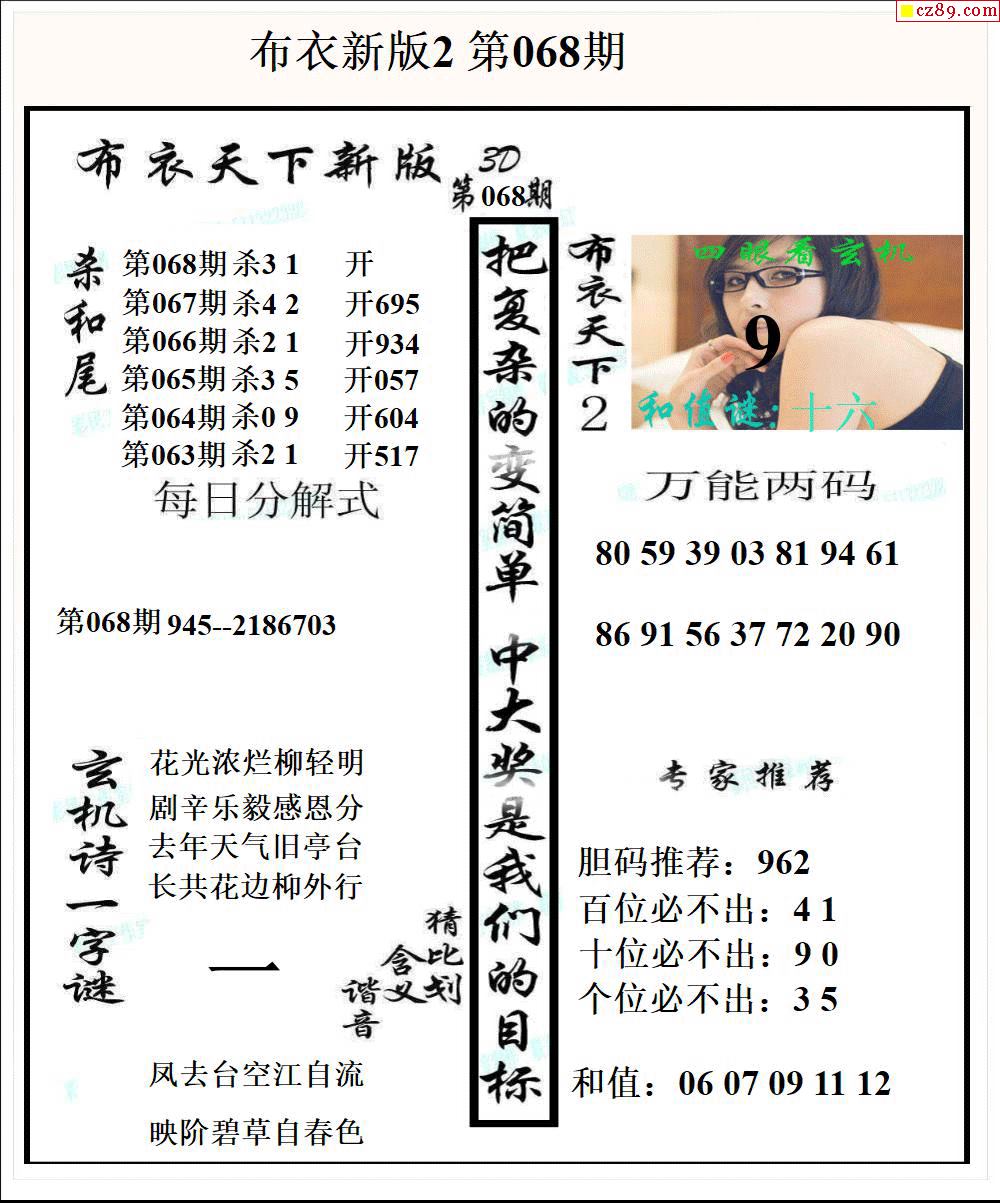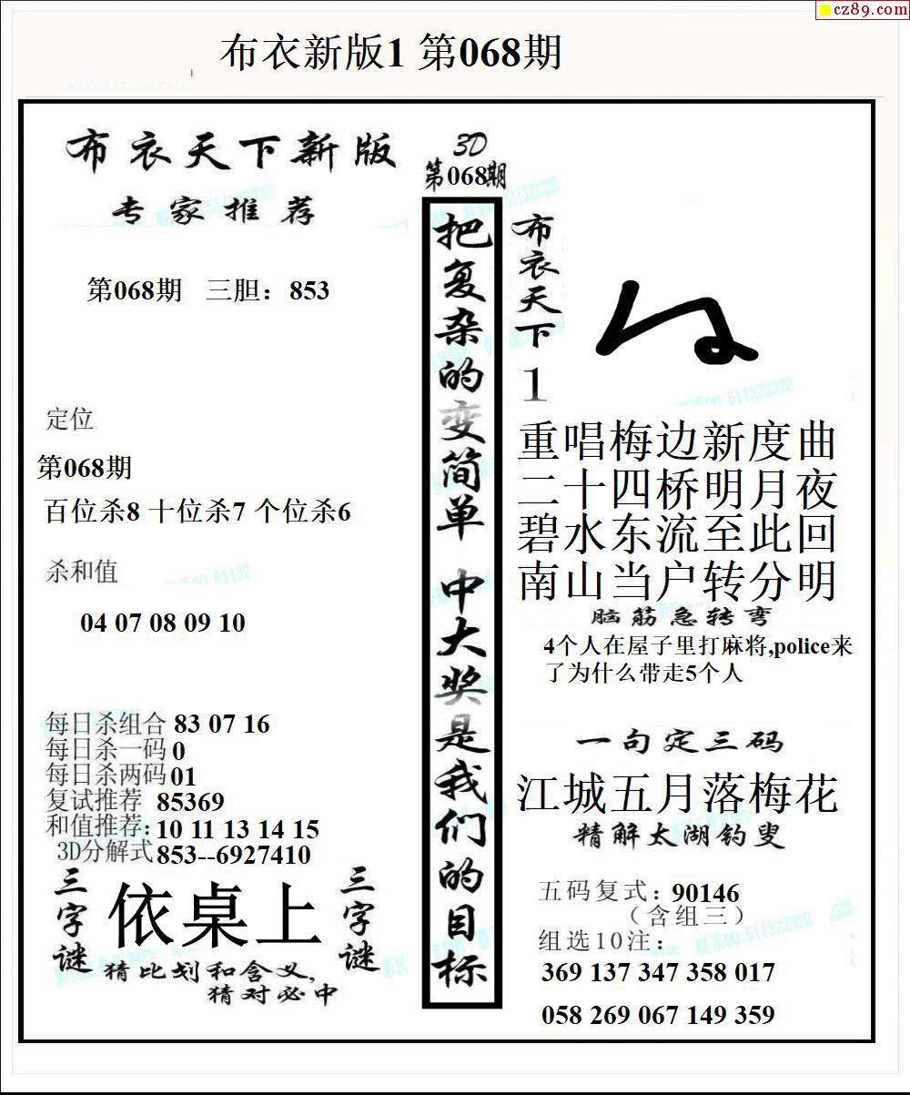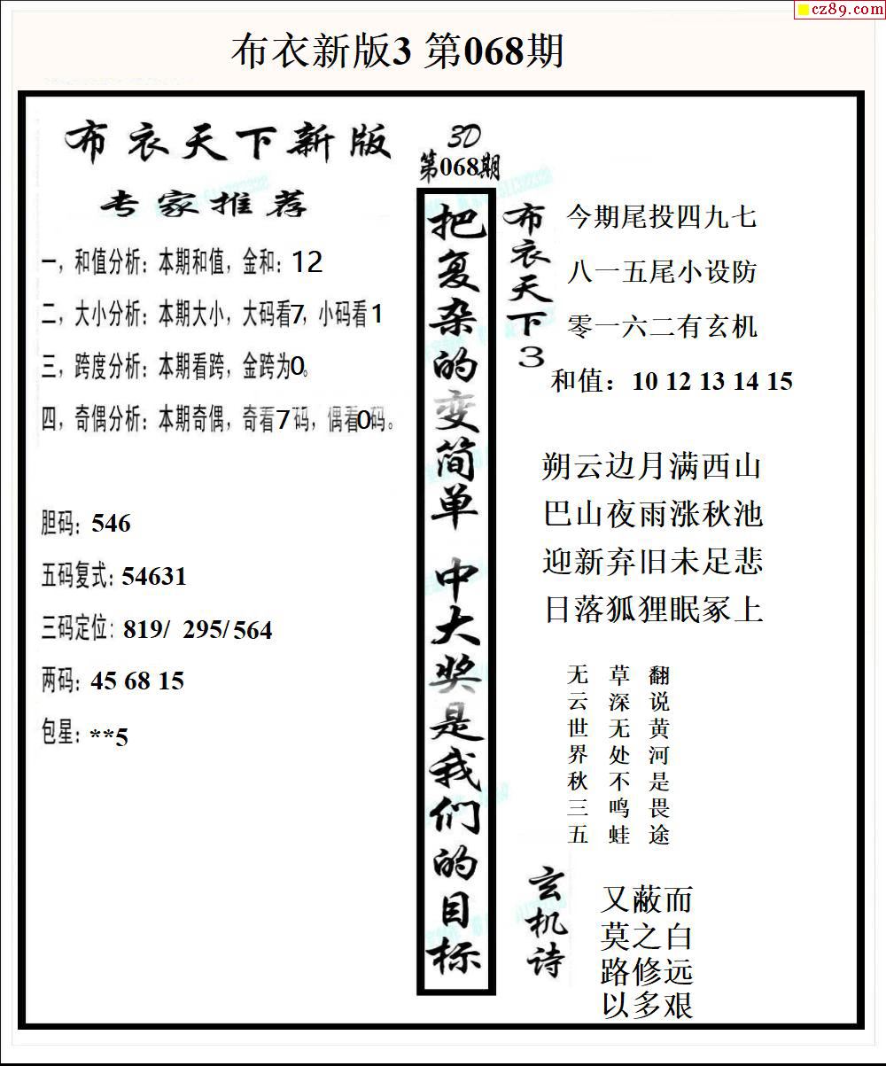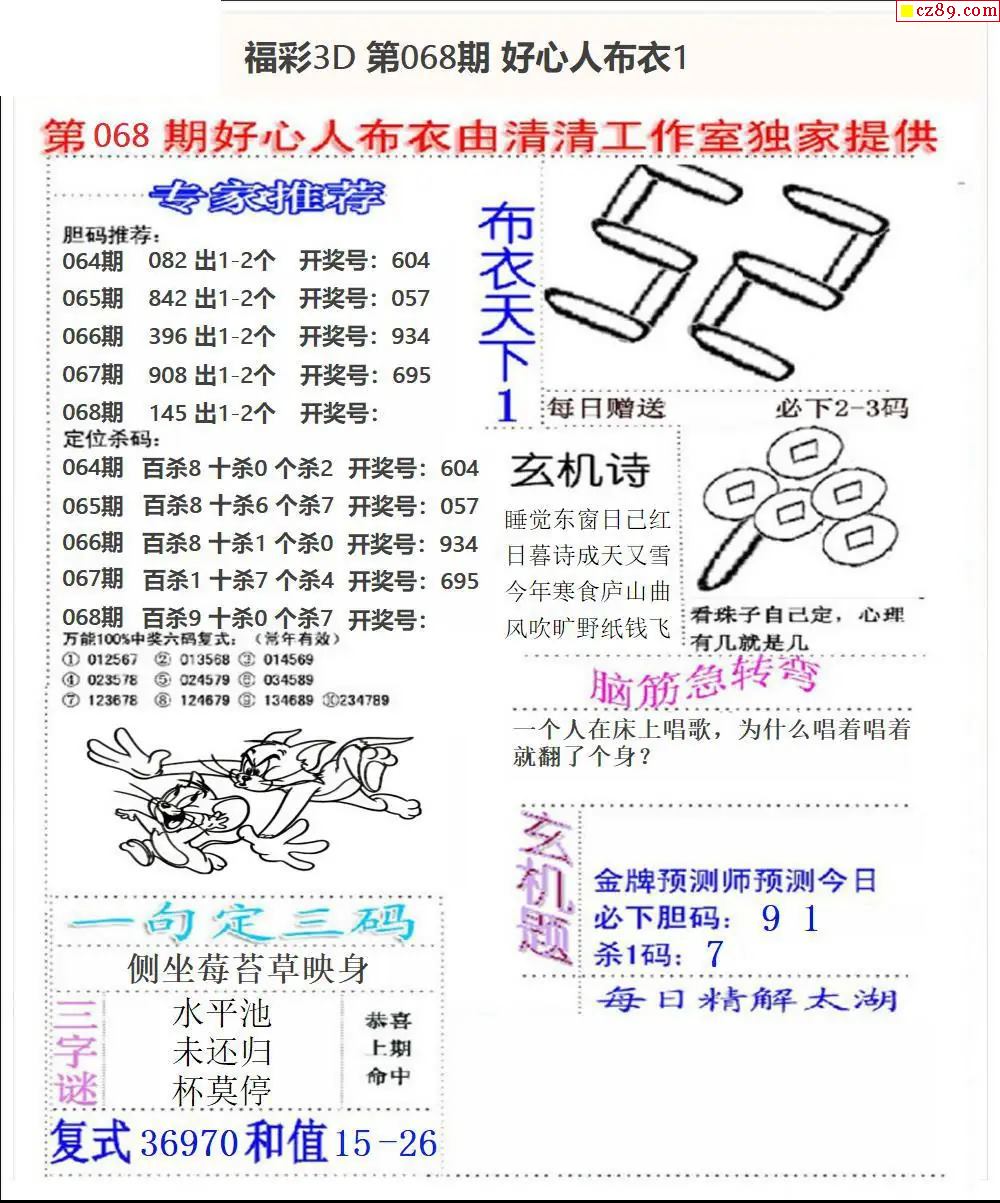 老夫子布衣2026068期3d图谜