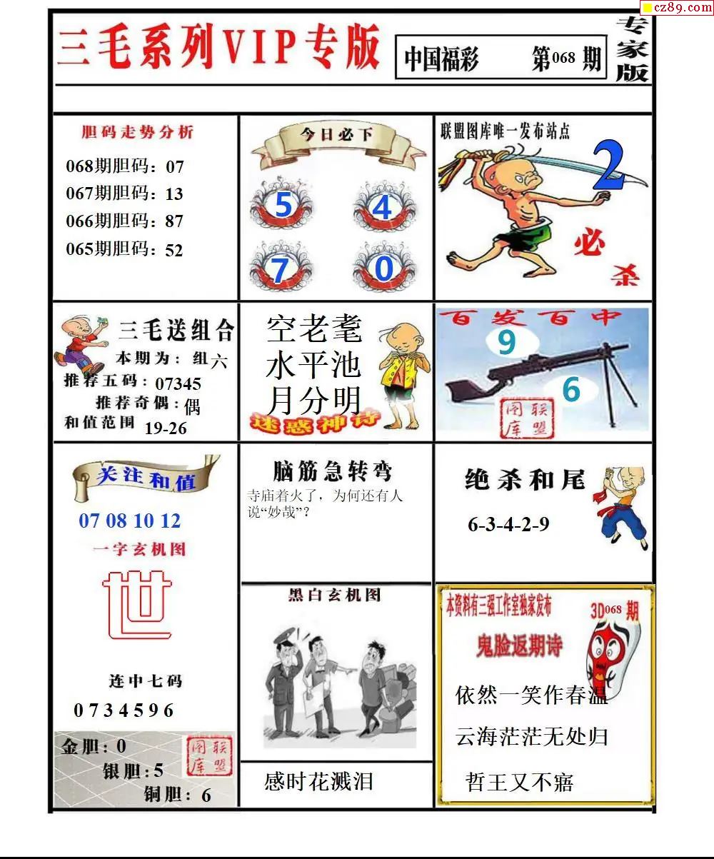 福彩3D2026068期东盛彩报+精品三毛会员版