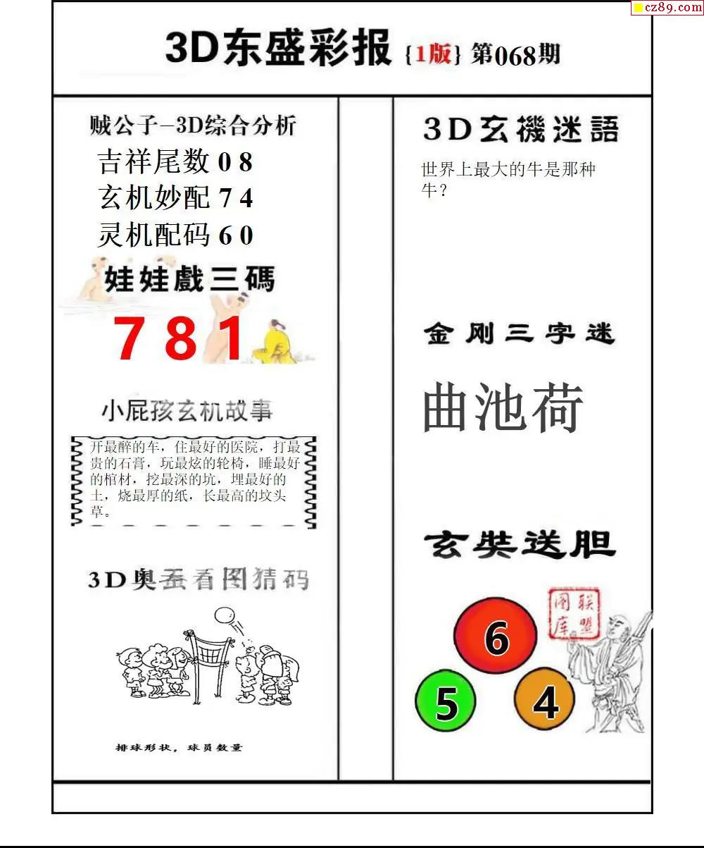 牛彩版3D字谜彩报图26年068期打印版
