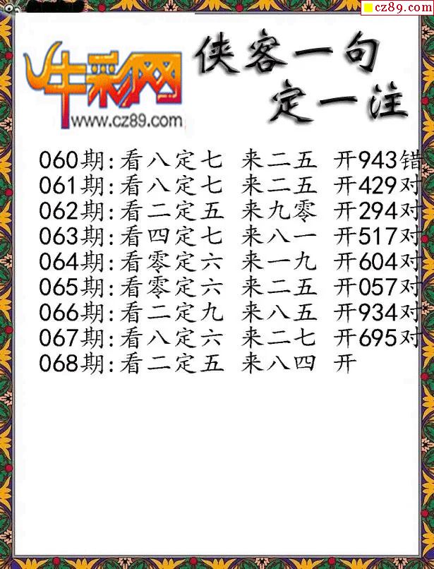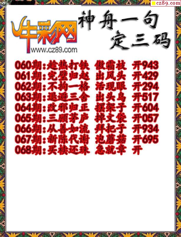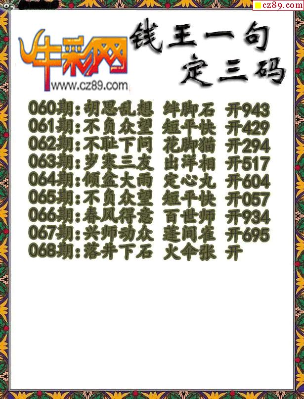 牛彩版3D字谜彩报图26年068期打印版