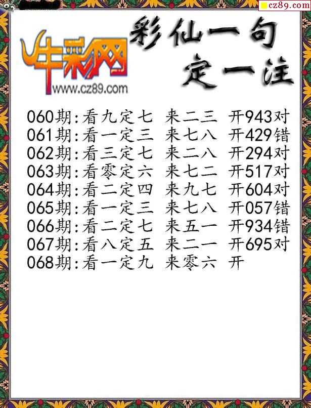 福彩3D2026068期牛彩图谜预测汇总