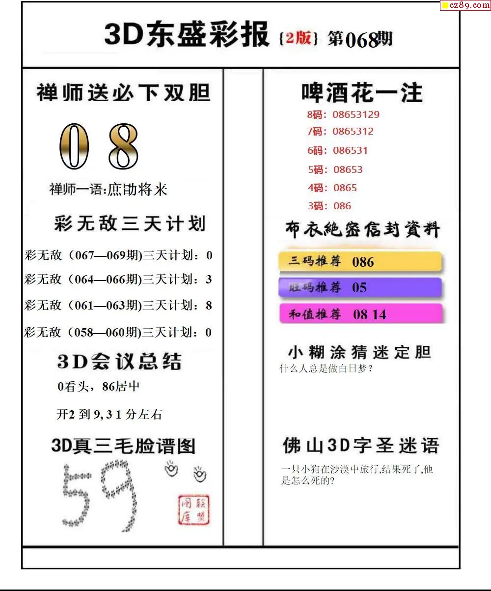 福彩3D2026068期图谜汇总