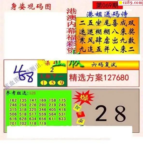 晚秋和值谜2026069期3d图谜