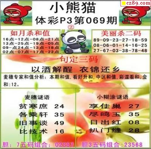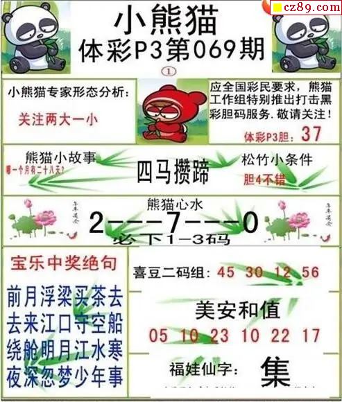 2026年069期牛彩网体彩P3画迷图谜汇总分享