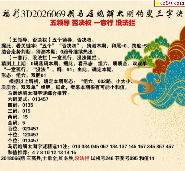 马后炮解26年069期3d太湖钓叟之 没法拦