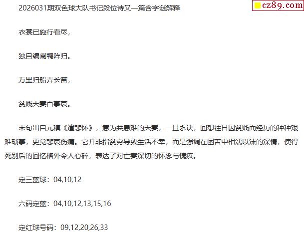 26年福彩双色球031期 大队书记段位诗另一篇