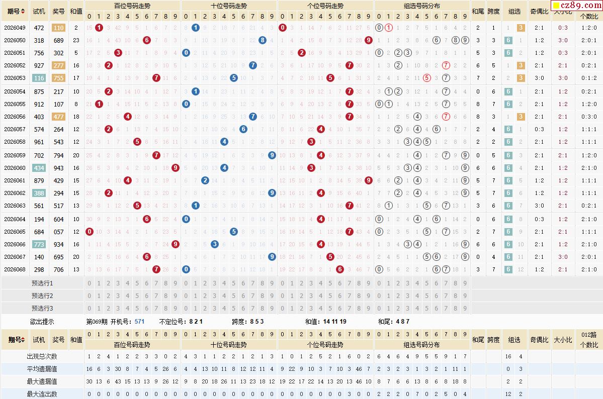 福彩3D069期模拟开奖号码+详细分析