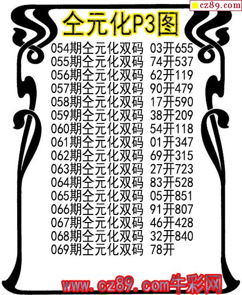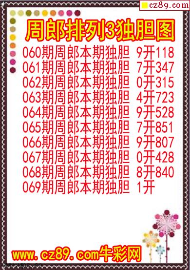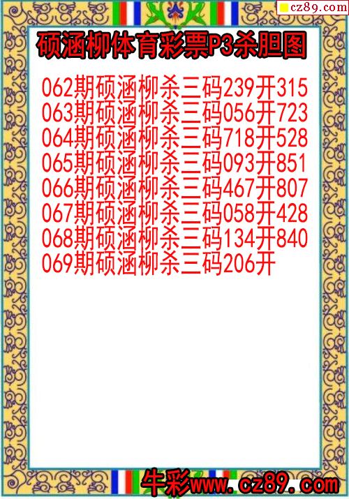 2026年069期牛彩网体彩P3画迷图谜汇总分享