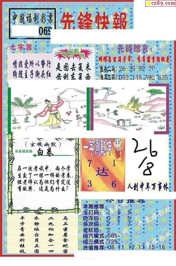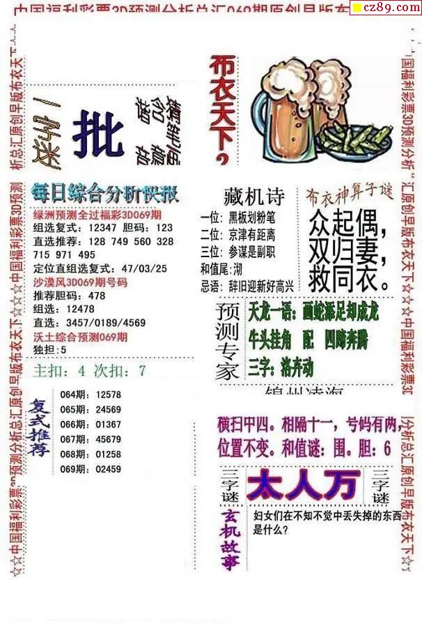 牛彩版3D字谜彩报图26年069期打印版