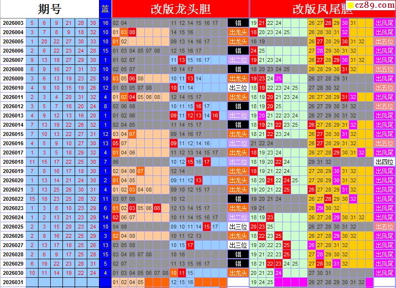 26年031期秋雨龙头凤尾走势图表
