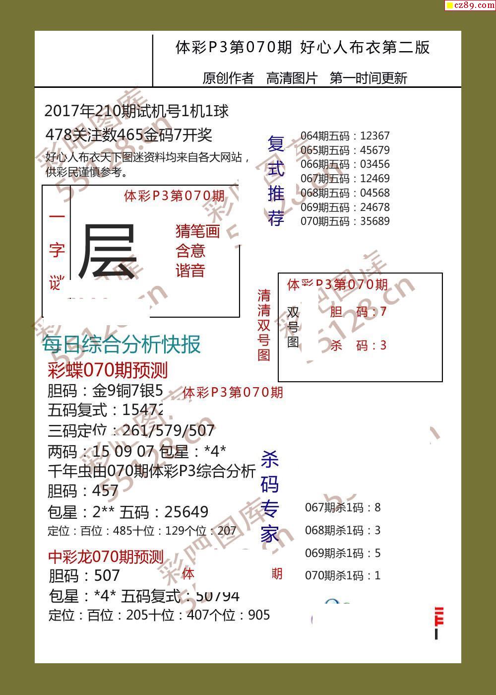 2026年070期牛彩网体彩P3画迷图谜汇总分享