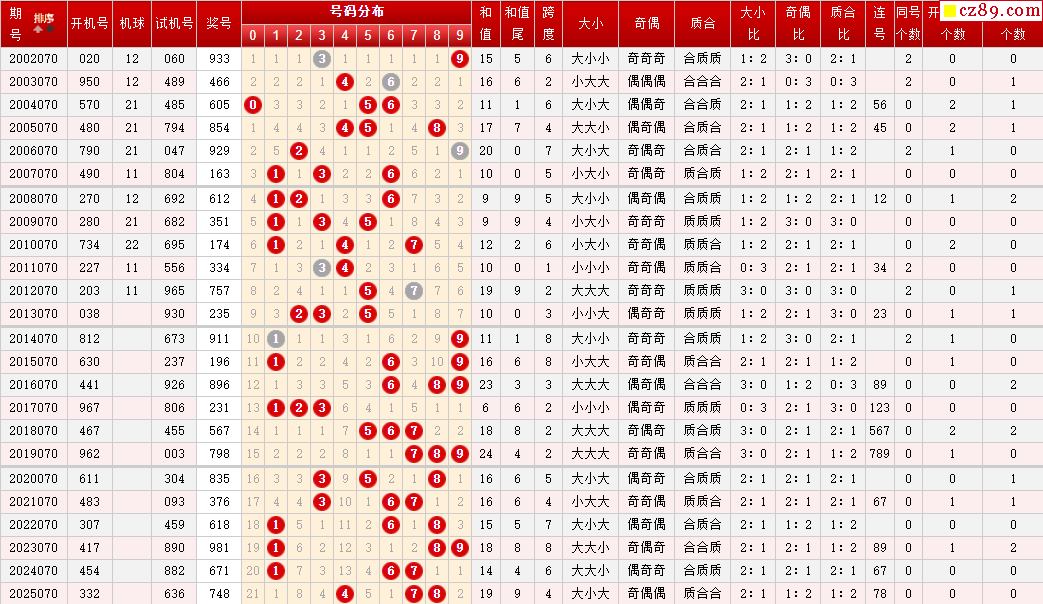 第070期福彩3D历史同期对比