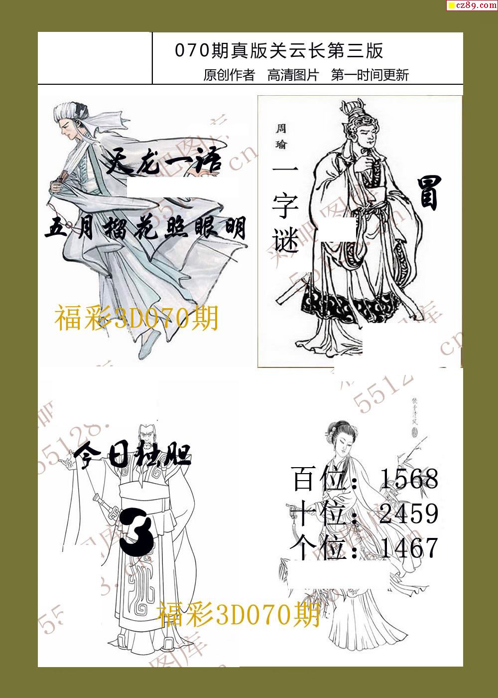 26年070期福彩3d真版关云长图谜