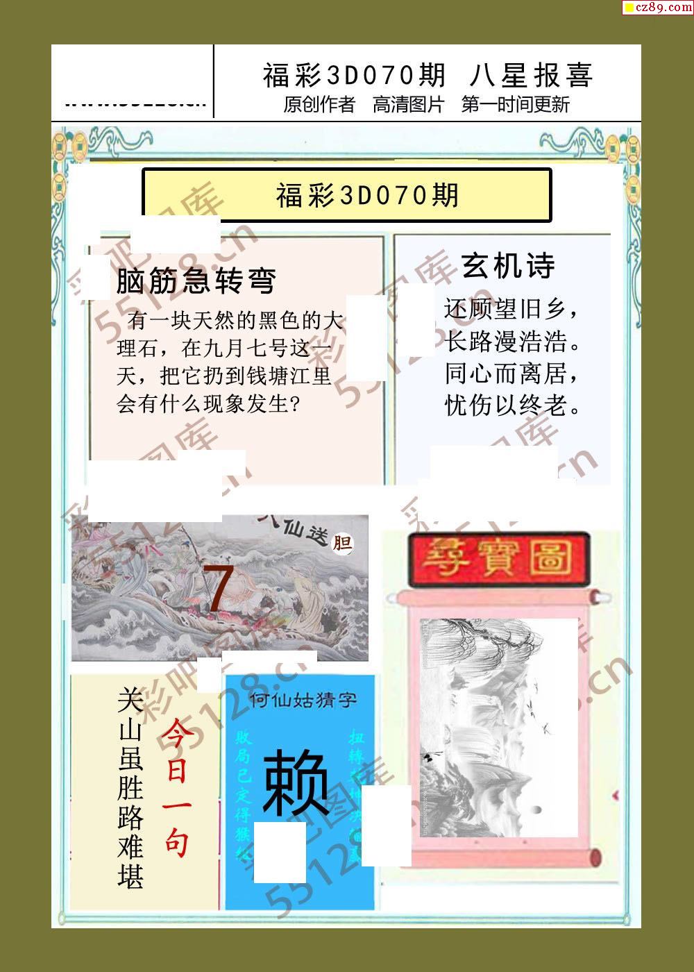 八星报喜26年070期福彩3d画谜