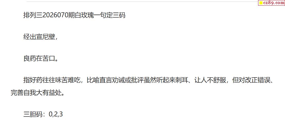 白玫瑰排三一句定三码26年070期