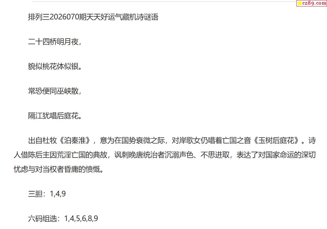 26年070期 狂想p3彩票谜语系列