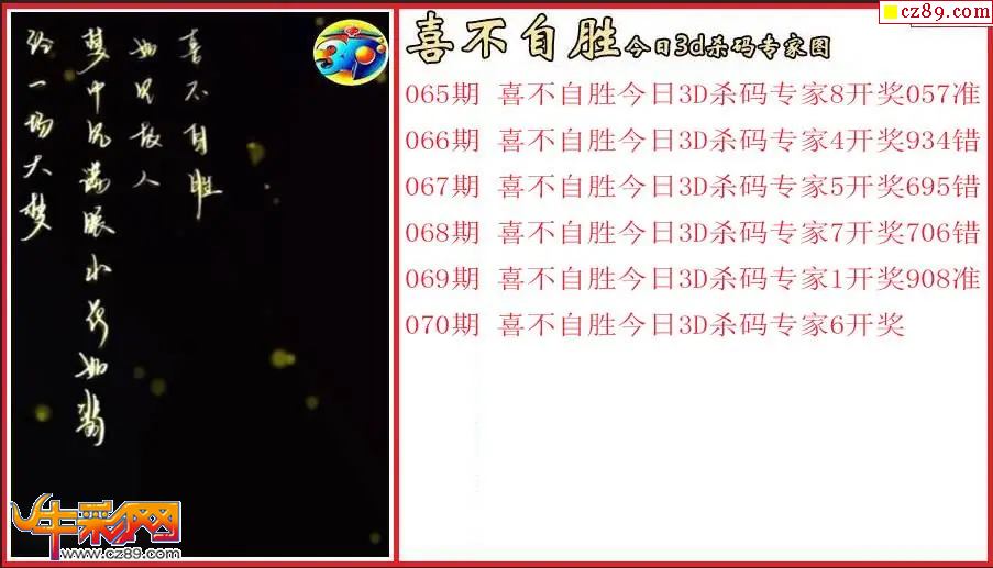 牛彩版3D预测彩报图26年070期打印版