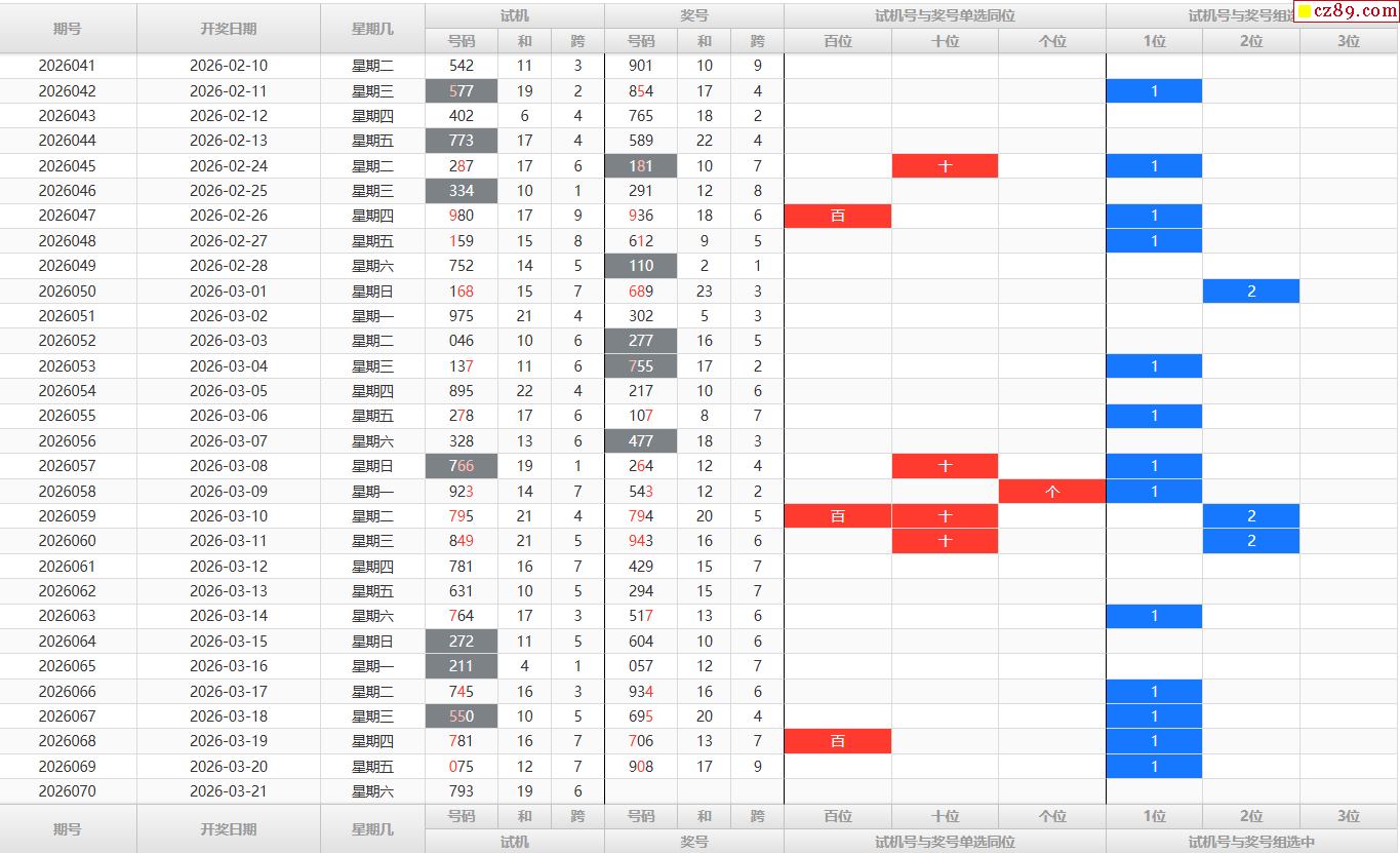 千禧3D试机号2026070期658关注数593金码9试机号对应码010