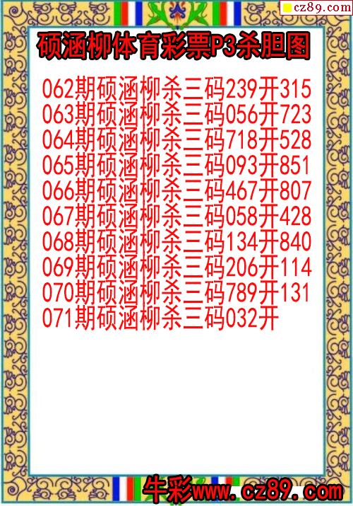 26年071期硕涵柳体育彩票P3杀胆图