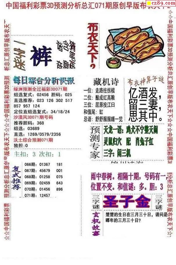 2026071期3D图谜汇总(二)