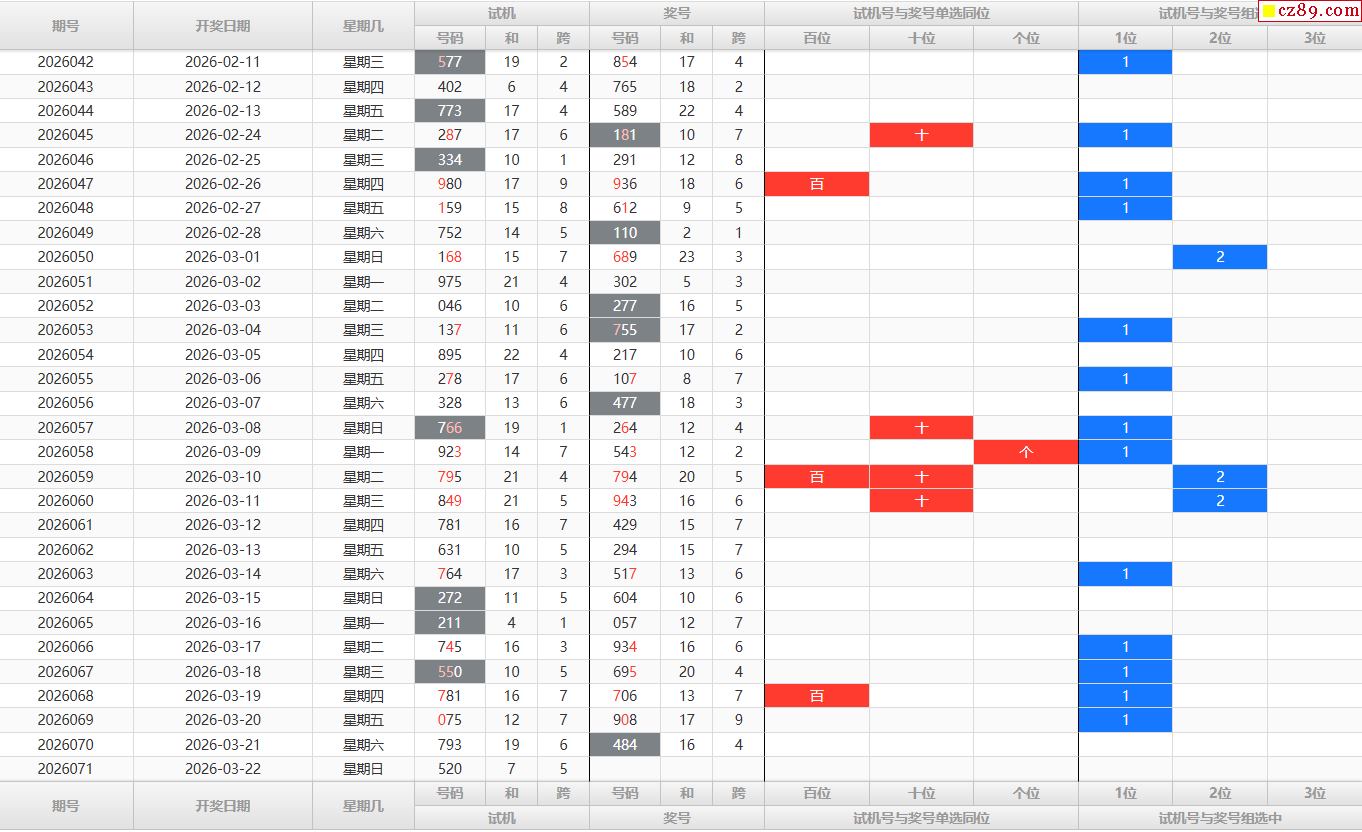 千禧3D试机号2026071期422关注数836金码3试机号对应码721