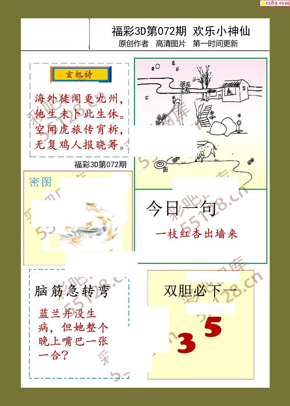 26年福彩3d072期欢乐小神仙预测图