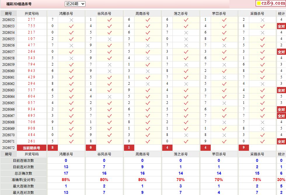 26年072期澳客专家福彩3D杀号定码推荐