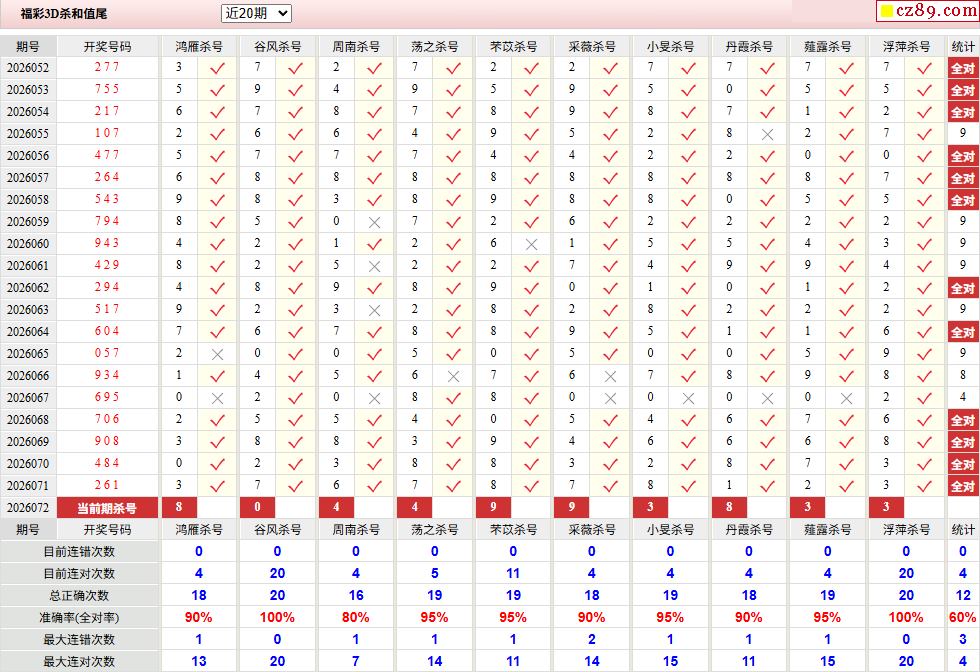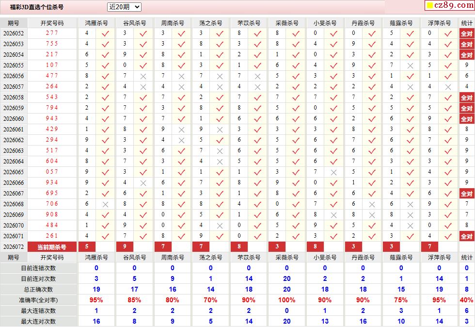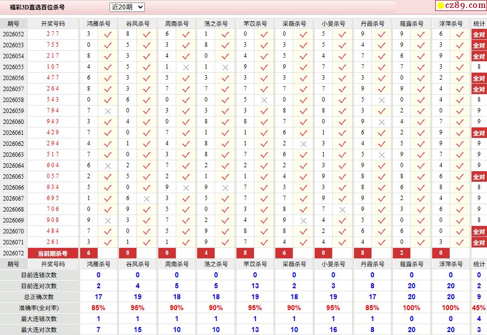 26年072期彩宝贝专家福彩3D杀号定码图表