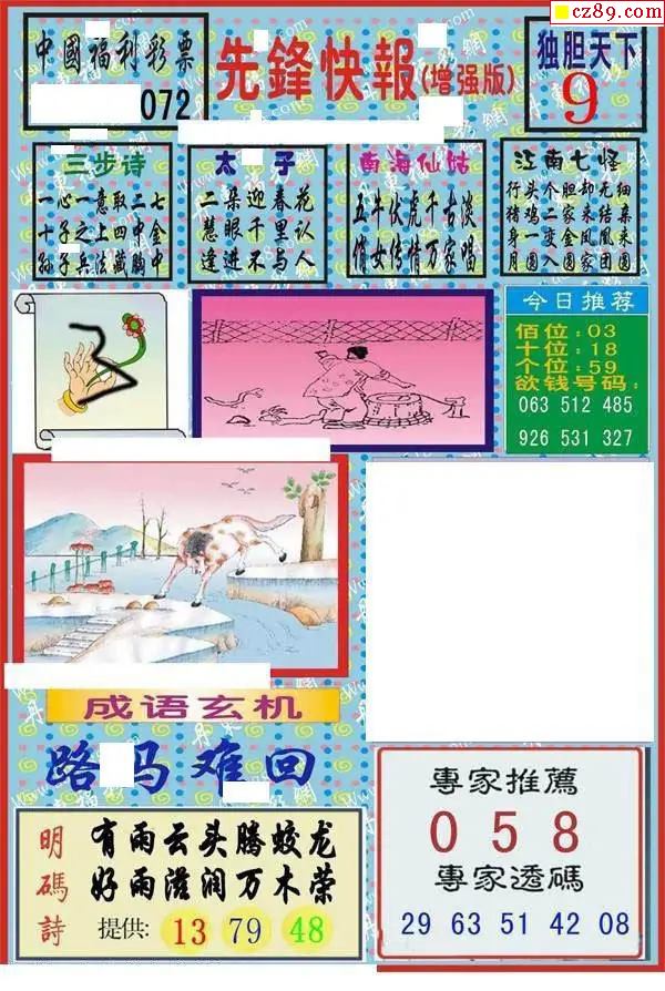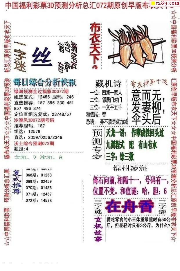 牛彩版3D字谜彩报图26年072期打印版