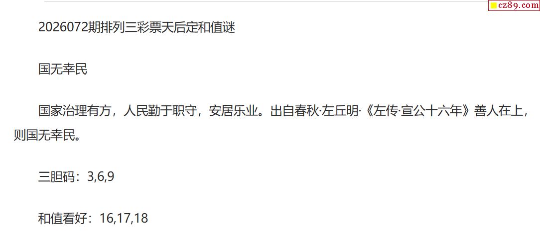 彩票天后p3定和值谜26年072期