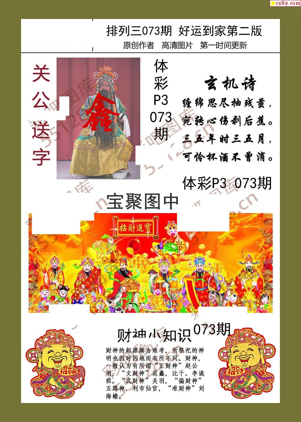 2026年073期牛彩网体彩P3画迷图谜汇总分享