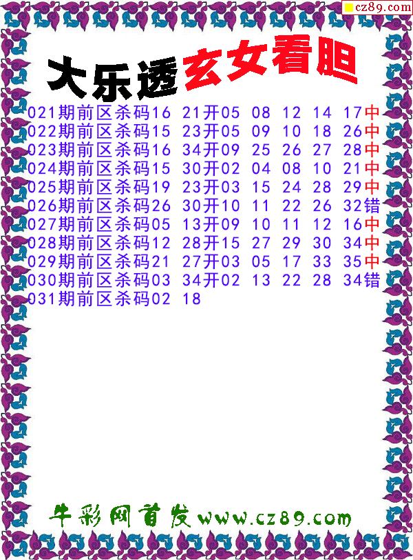 大乐透2026031期玄女看胆前区杀号图谜 10中8