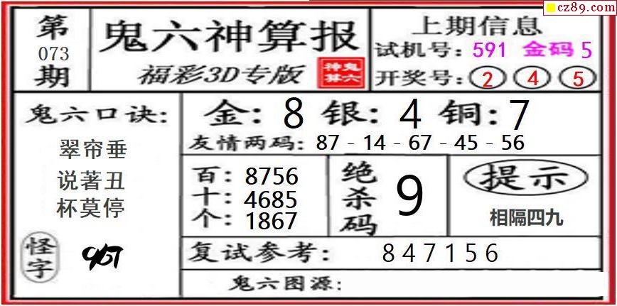 关公杀码2026073期今日3d图谜