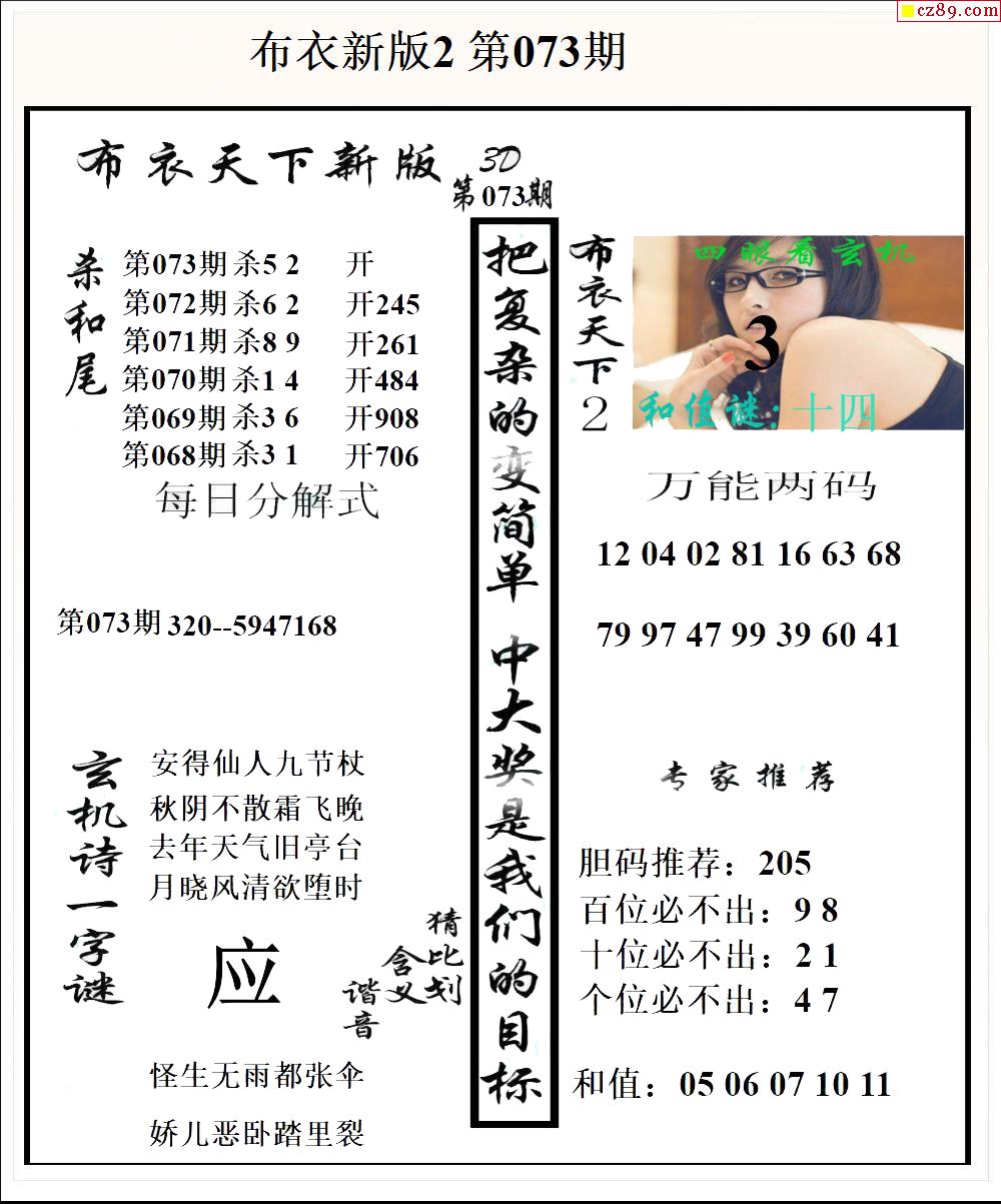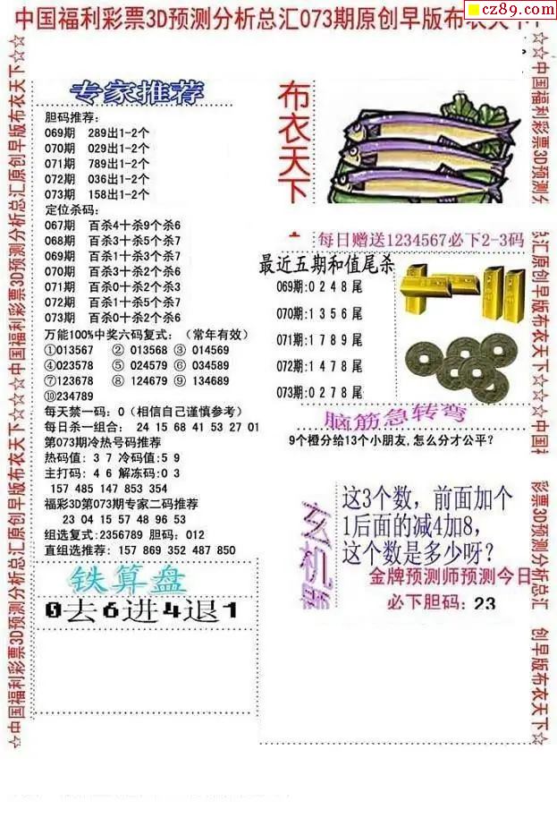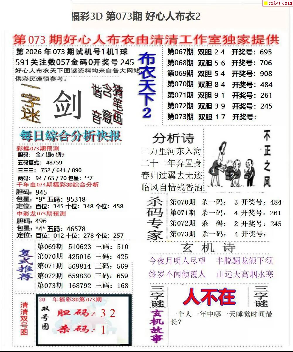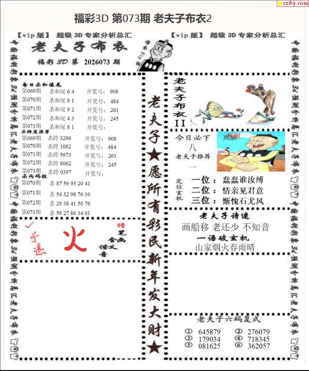 老夫子布衣2026073期3d图谜
