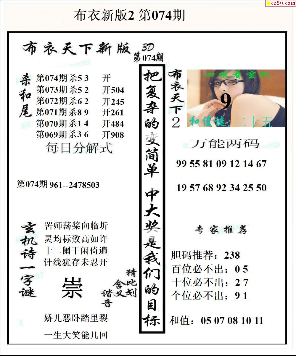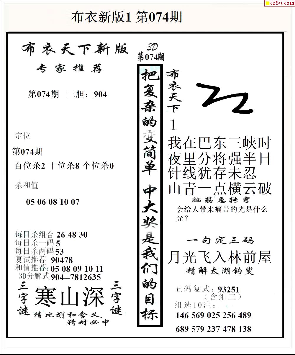 布衣天下新版2026074期3d图谜