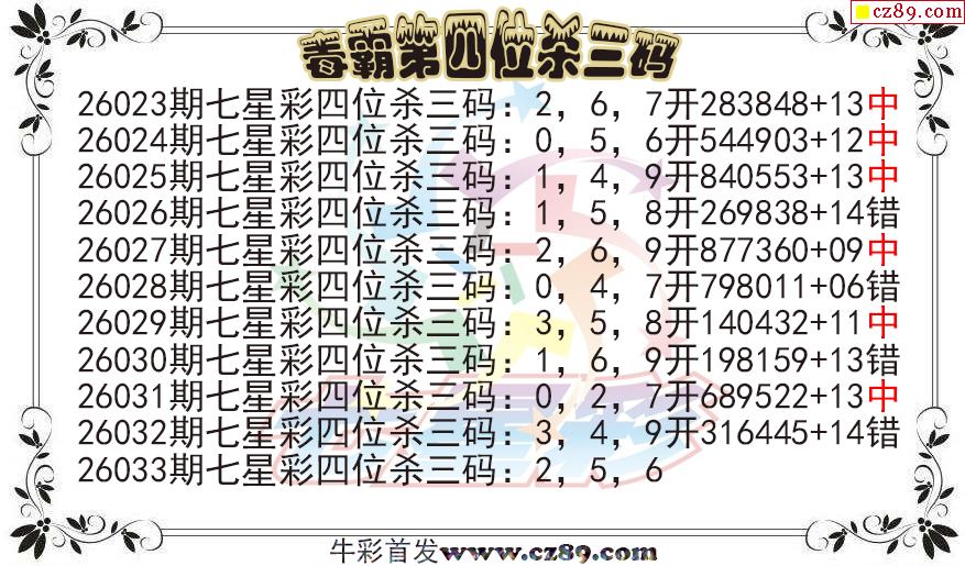 七星彩2026033期毒霸第四位杀三码图迷 10中6