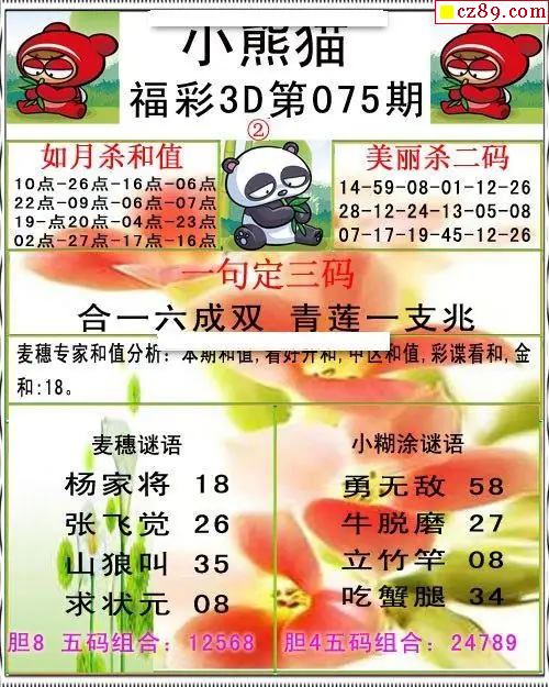 小熊猫彩报2026075期3d图谜