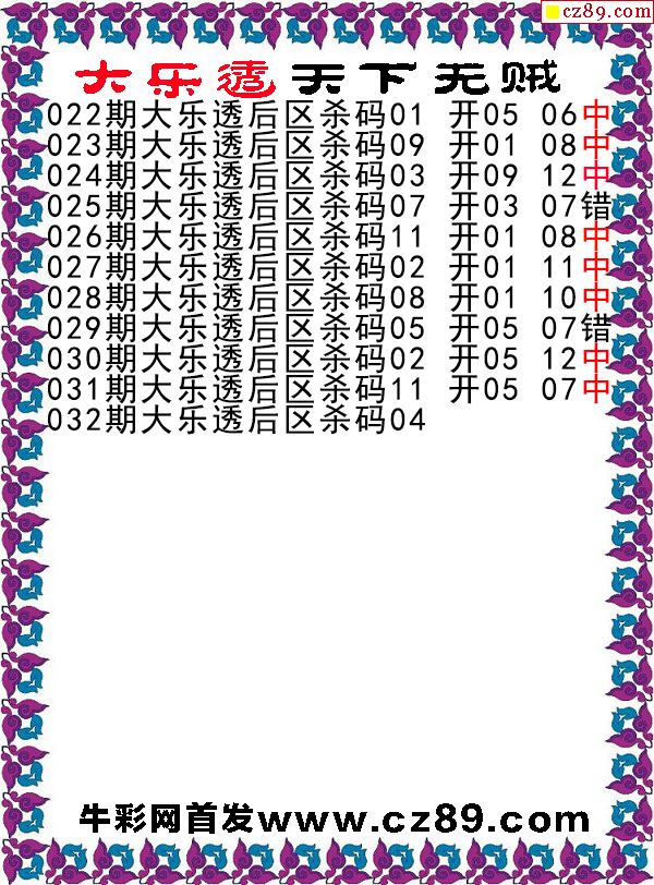 大乐透032期牛彩特邀专家前区后区杀号定胆图表