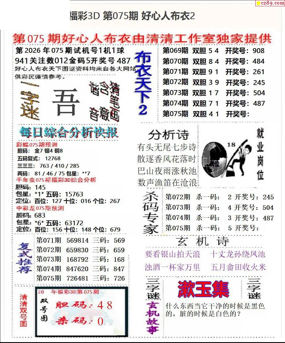 2026075期3d字谜图谜总汇