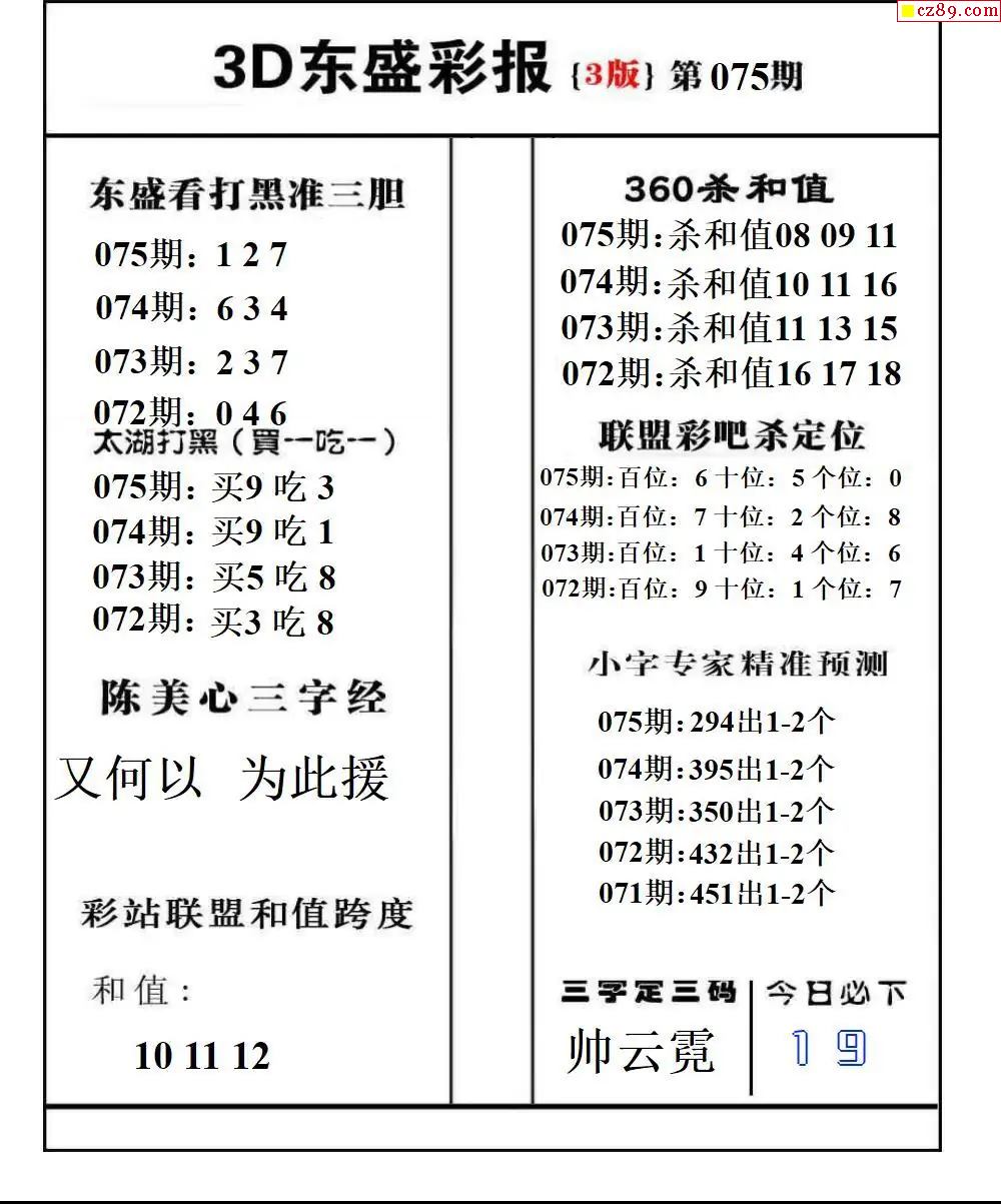 福彩3D2026075期东盛彩报+精品三毛会员版