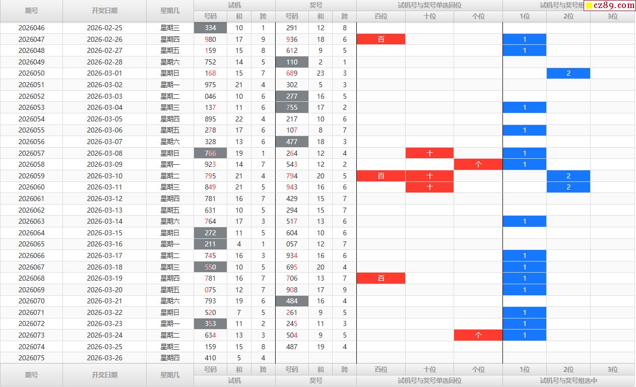26年075期福彩3D试机号走势图表分析