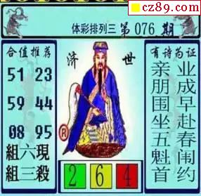 e族2026年076期体彩排列3图谜