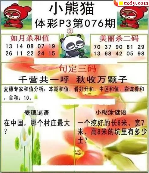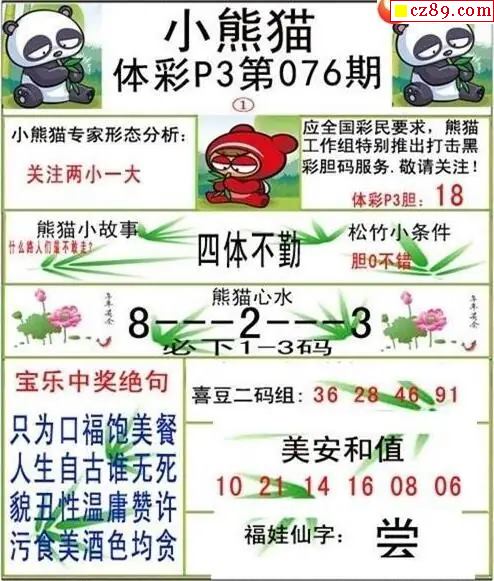 小熊猫2026076期体彩P3图谜